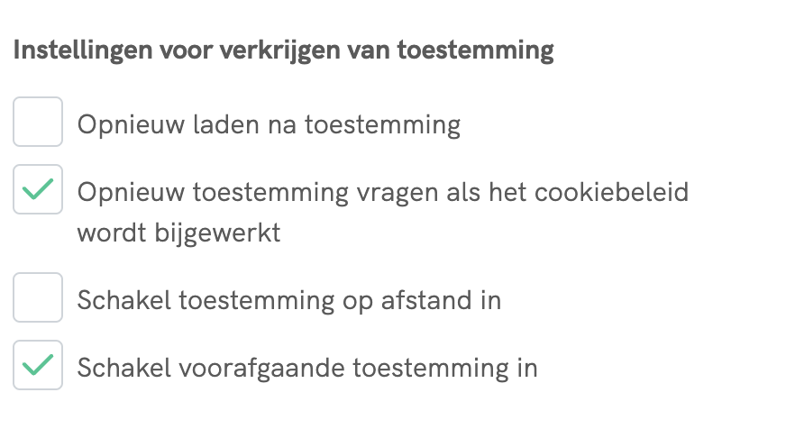 Met onze oplossing kan actieve toestemming worden verkregen via: