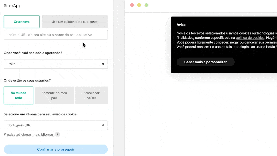Se você já estiver usando nossa Privacy Controls and Cookie Solution, não precisará fazer nada. Basta acessar o seu painel: você encontrará o novo configurador, pronto para uso.